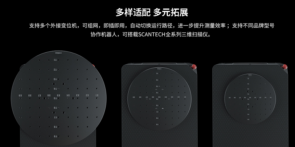 平台安全稳定,符合欧标CE认证要求,有多种安全防护硬件,保障安全作业。多样配件提供不同搭配可能性,可实现不间断测量及各类特殊零件的自动化三维测量。SCANTECH自动化软件FlexScan ,界面简洁,简单易学,人机交互清晰明了;内置多种通讯模式,支持多种机器人,可根据现场不同布局,适应多变位机的自动测量。
