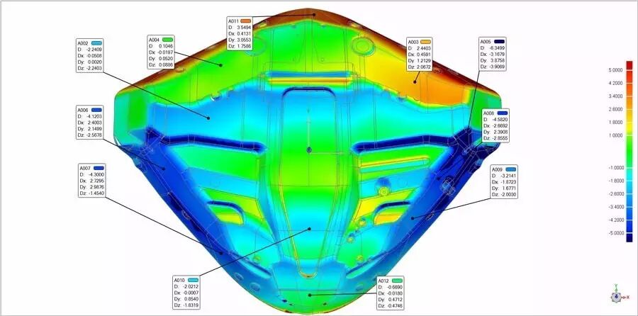 Step3.扫描的三维数据与轮罩的数模进行3D比较,误差分析;