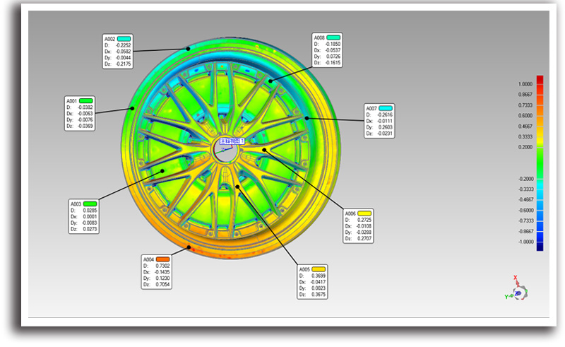 Post mark points and using HSCAN331 to scan, obtain the 3d data and then import into professional test software than do the comparison, get the report and view the deviation.